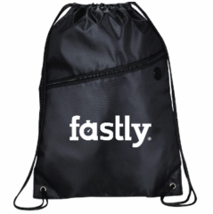 The Robin Drawstring Bag has a large main compartment with a cinching rope closure. This specialty drawstring bag includes a zippered front pocket with an earbud port and reinforced corner tabs.